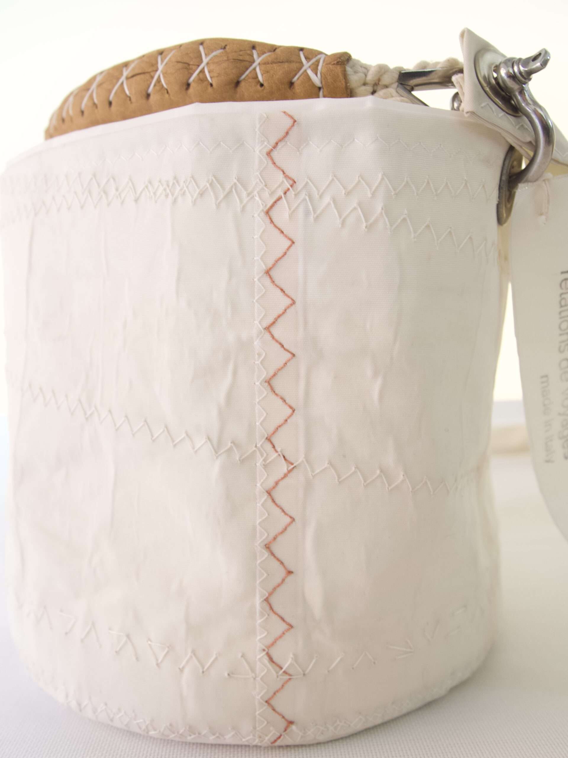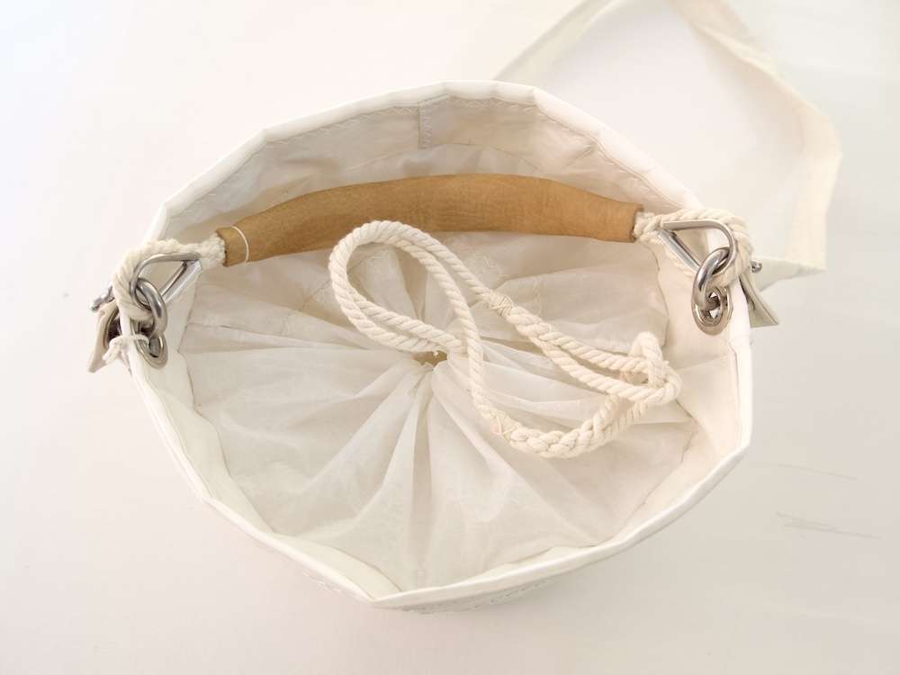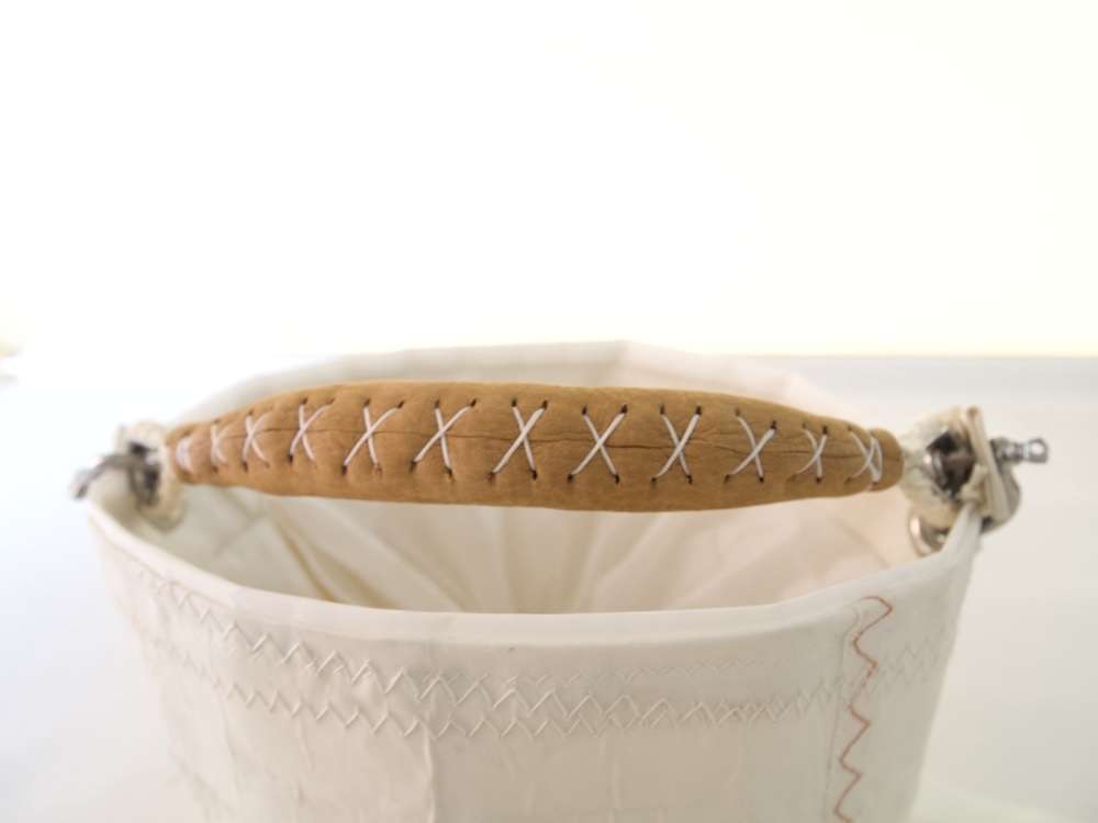 Les éventuelles irrégularités ne sont pas des défauts de fabrication mais des témoignages du « vécu » de la voile, qui rendent cet accessoire unique et authentiquement recyclé.