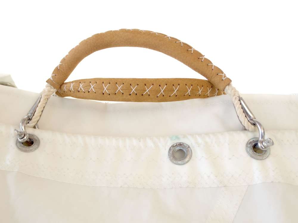 Eventuali irregolaritร non sono un difetto di fabbricazione ma l’aspetto vissuto della vela e che rendono questa borsa unica e veramente riciclata.