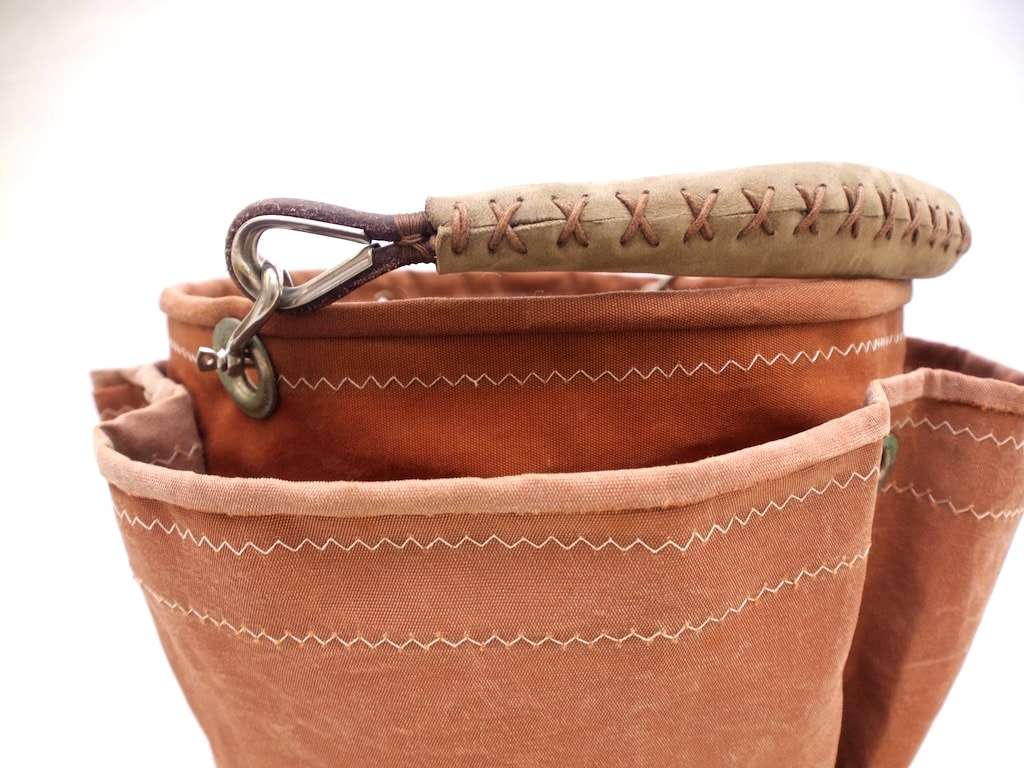 Relations de Voyages® certifica che questa borsa da giardino è completamente realizzata con una vela riciclata dello yawl Agneta .