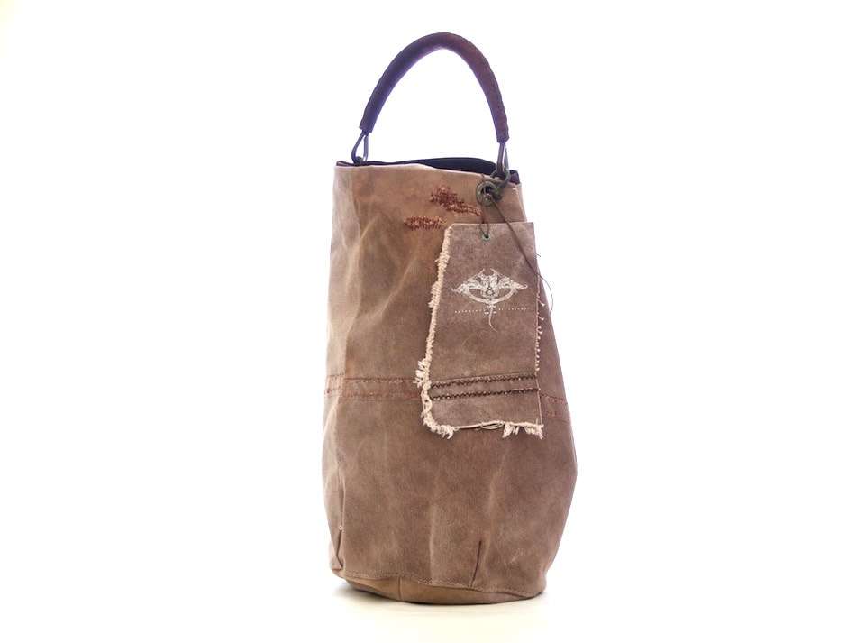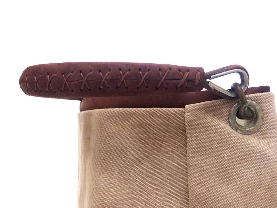 Relations de Voyages® certifica che questa sacca a spalla è realizzata con una randa usata di cotone colore tan bark di un botter olandese , l’interno é realizzato con un “grand hunier volant” di cotone del veliero Belem Trois Mats, Nantes 1896 Francia, lavate dalle impurità.