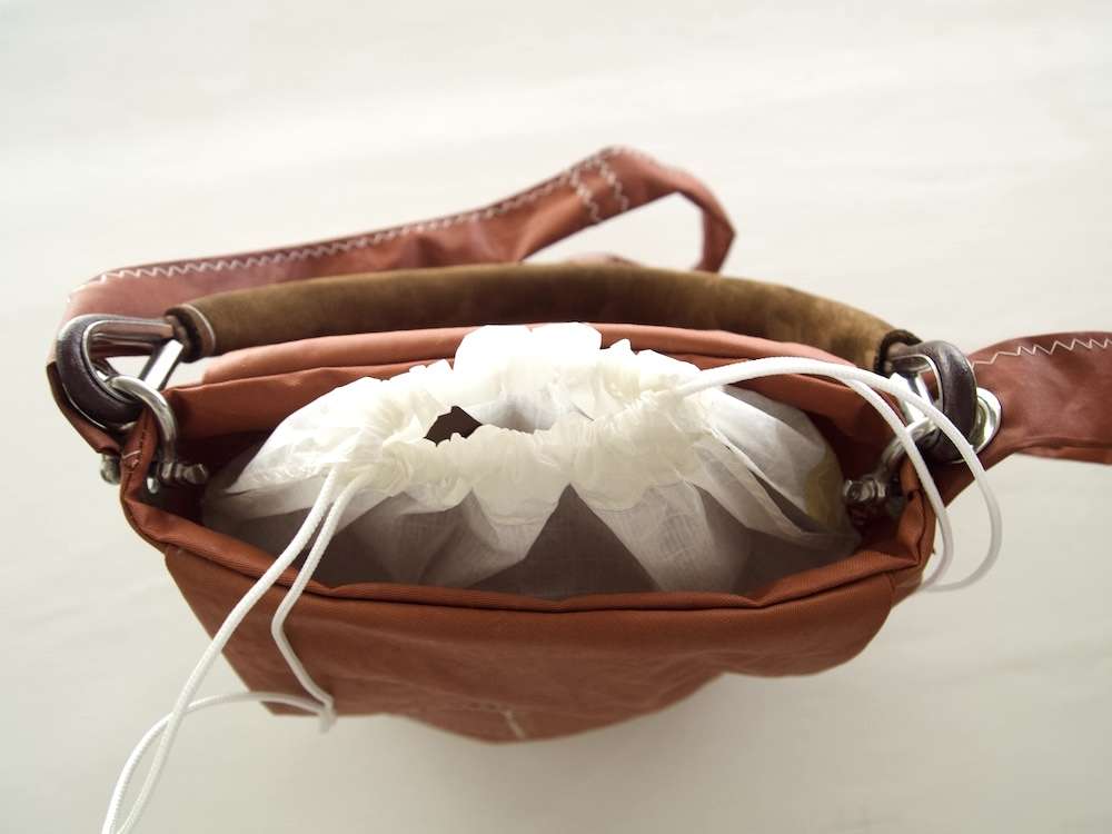 Eventuali irregolaritร non sono un difetto di fabbricazione ma l’aspetto vissuto della vela e che rendono questa borsa unica e veramente riciclata.