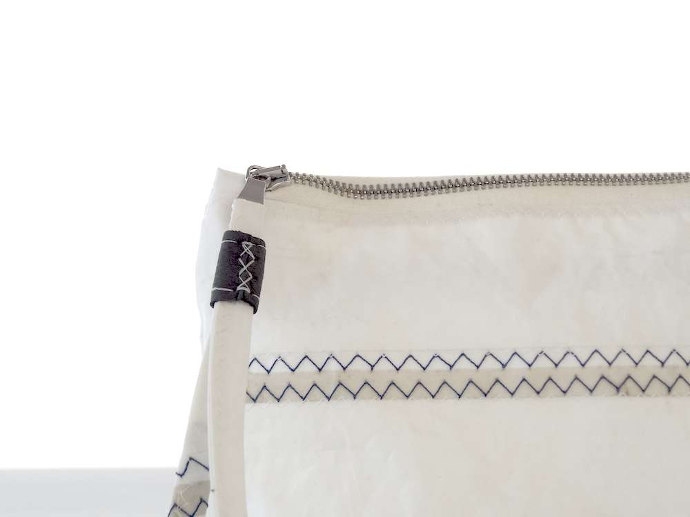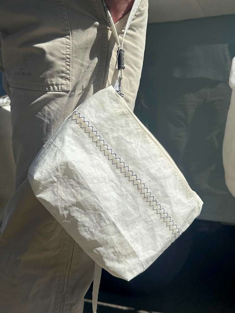 Relations de Voyagesยฎ certifica che questa pochette รจ completamente realizzata con una vela riciclata (genoa) .
